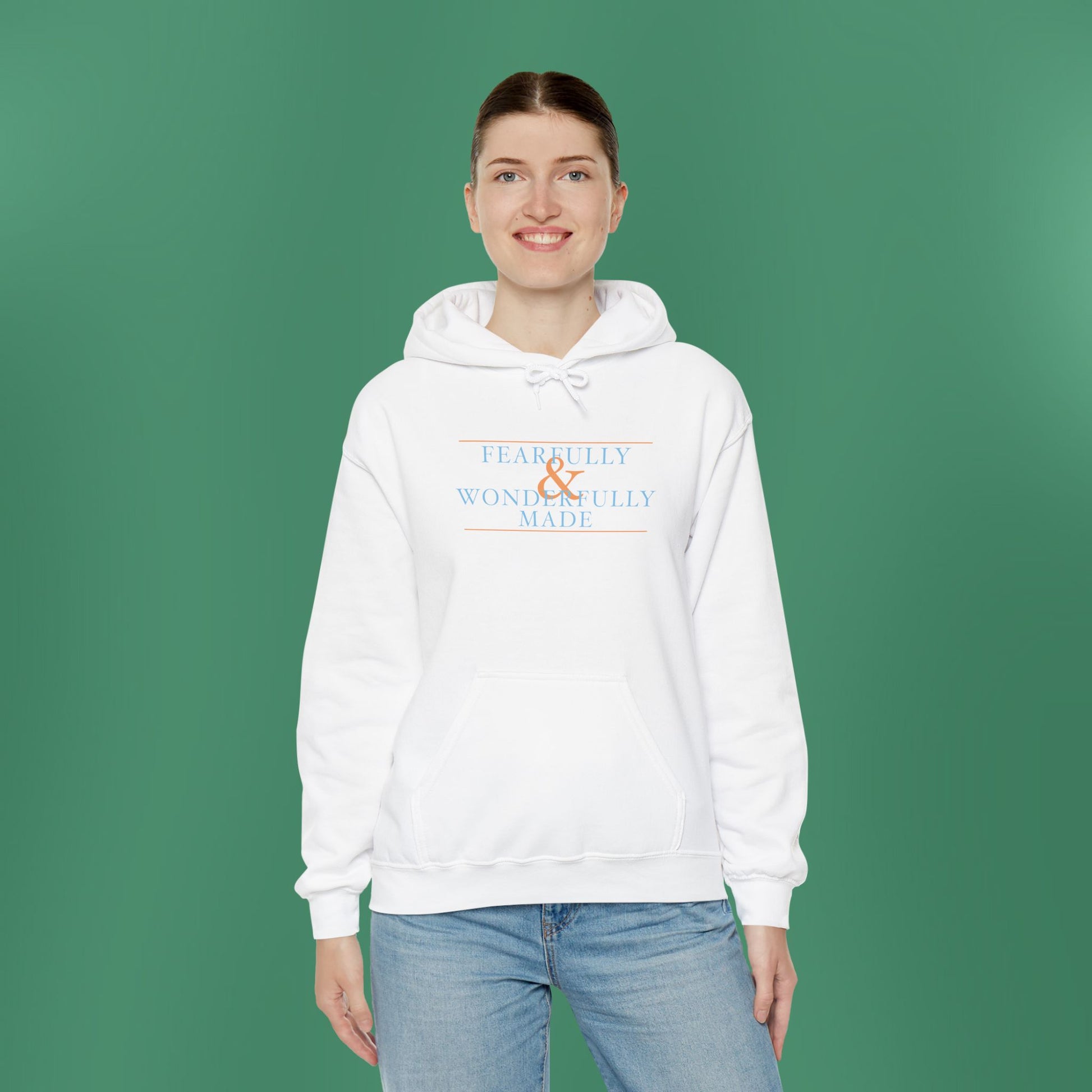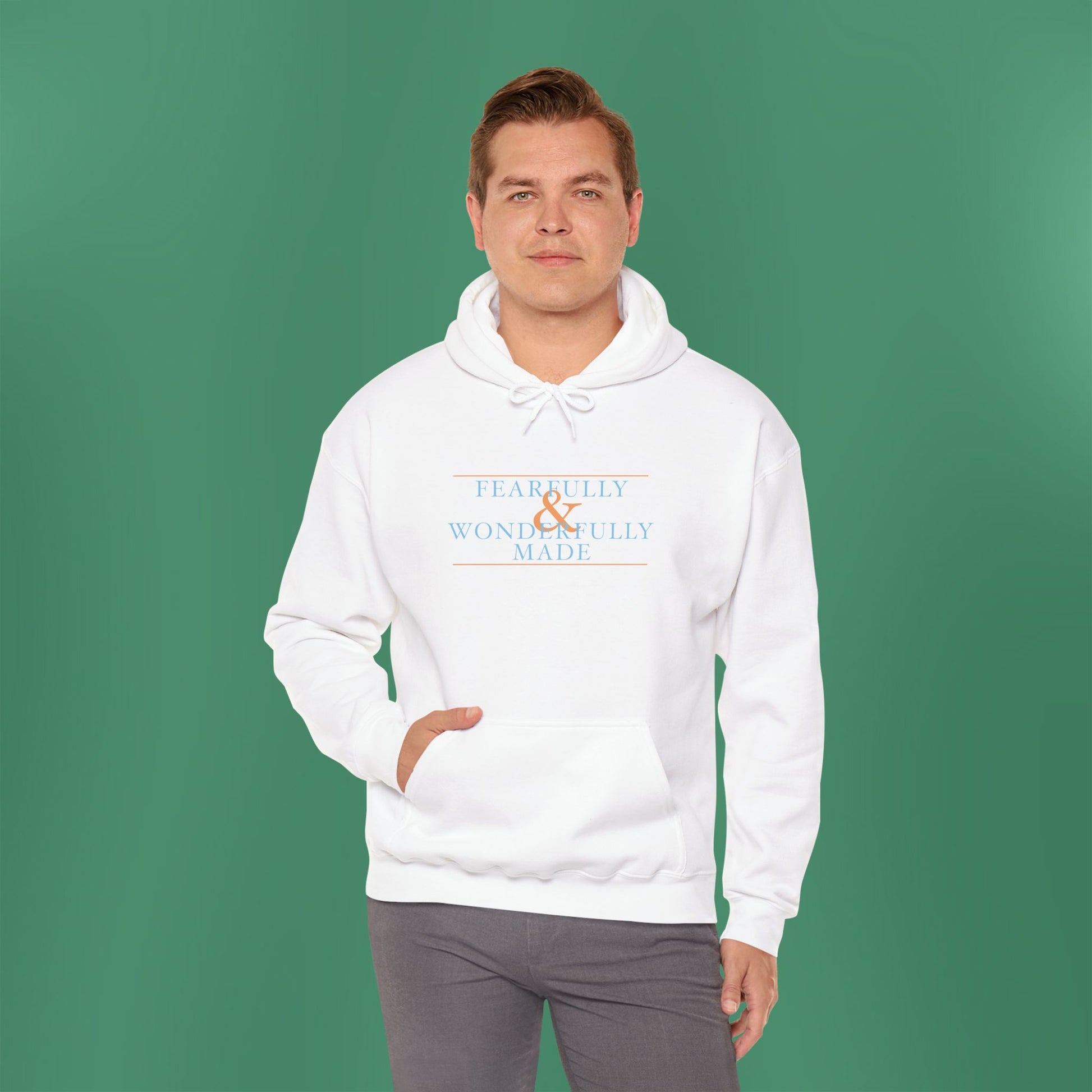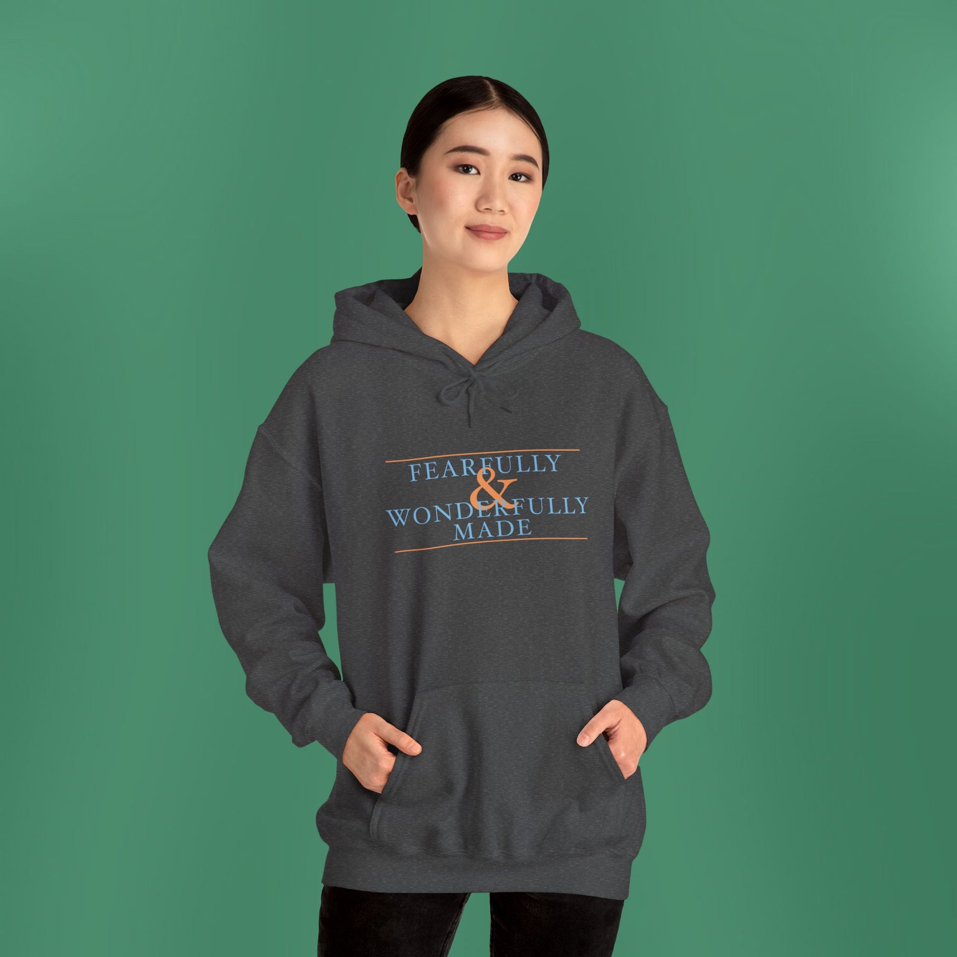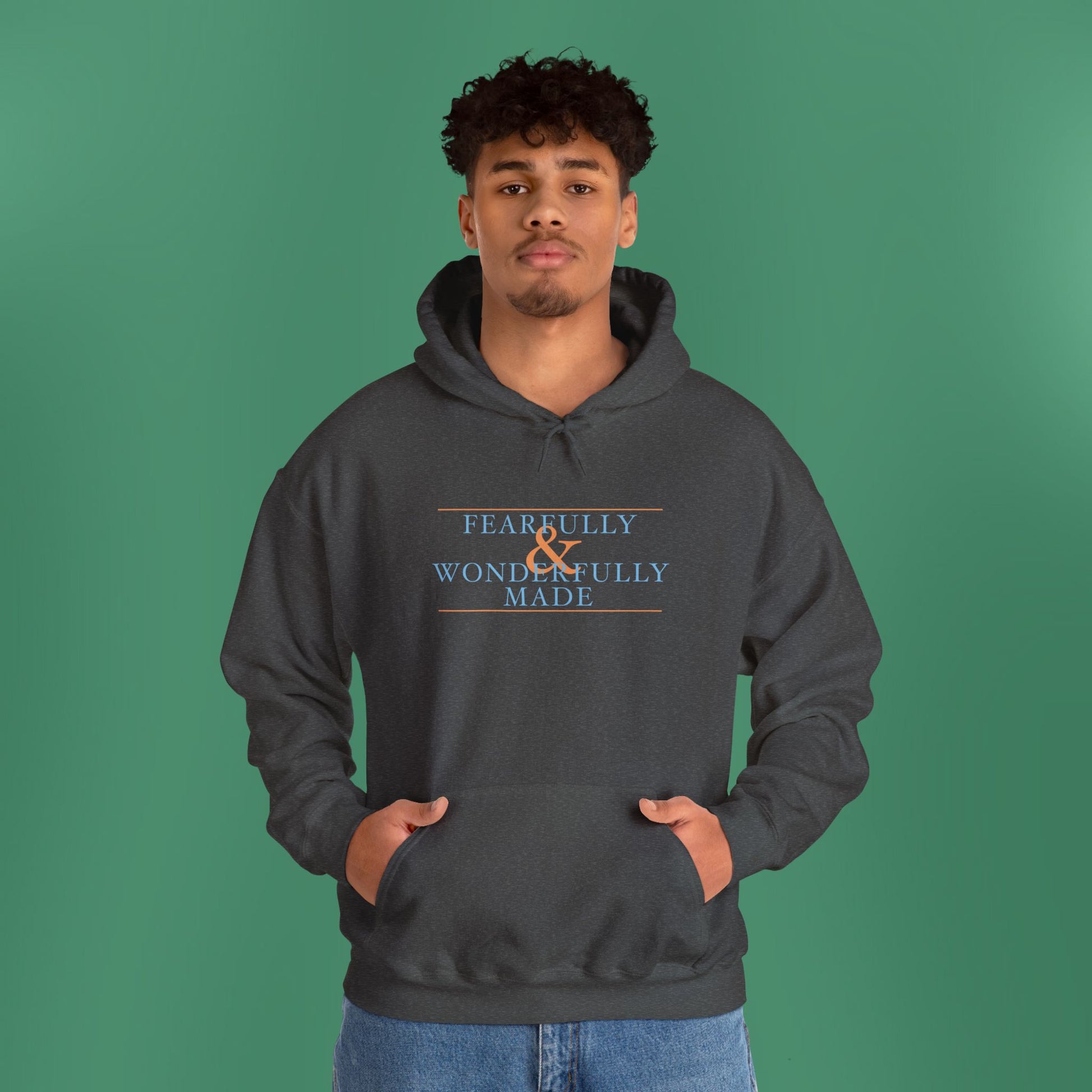 A simplistic, yet stunning design based on Psalm 139:14! This heavy blend crewneck sweatshirt is pure comfort. The collar is ribbed knit, so it retains its shape even after washing. There are no itchy side seams on these sweaters. The sweatshirt has a loose fit with medium-heavy fabric.