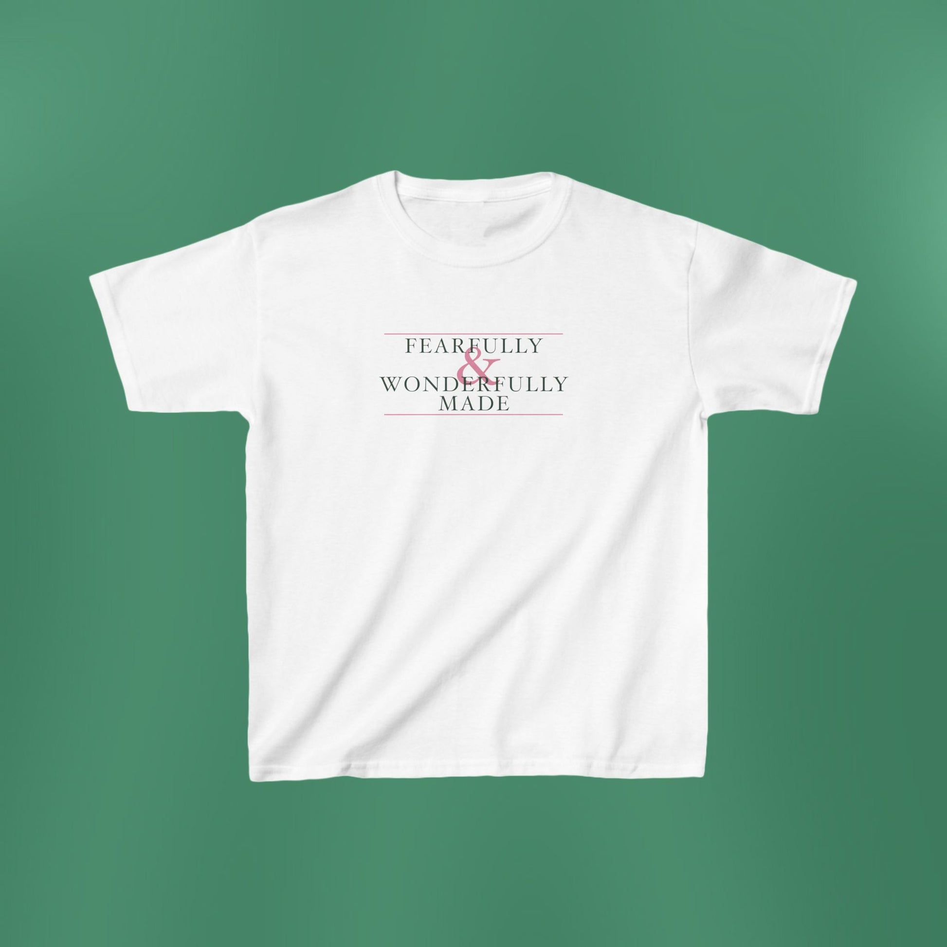 A simplistic, yet stunning design based on Psalm 139:14! The shirt has a classic, comfy fit with medium fabric. The fabric is 100% cotton for solid colors. Polyester is included for heather-color variants. The collar is curl-resistant due to ribbed knitting. There are no seams along the sides.