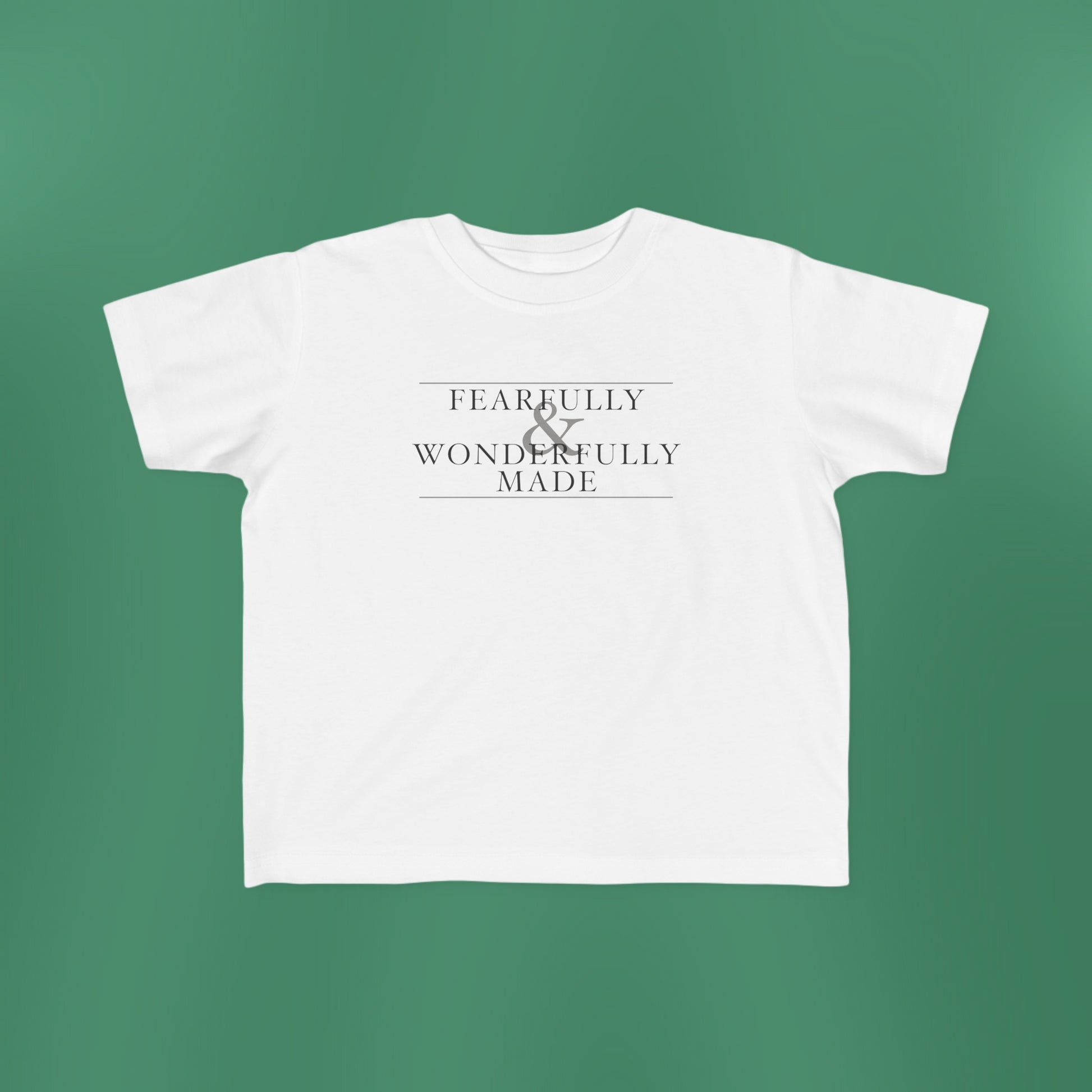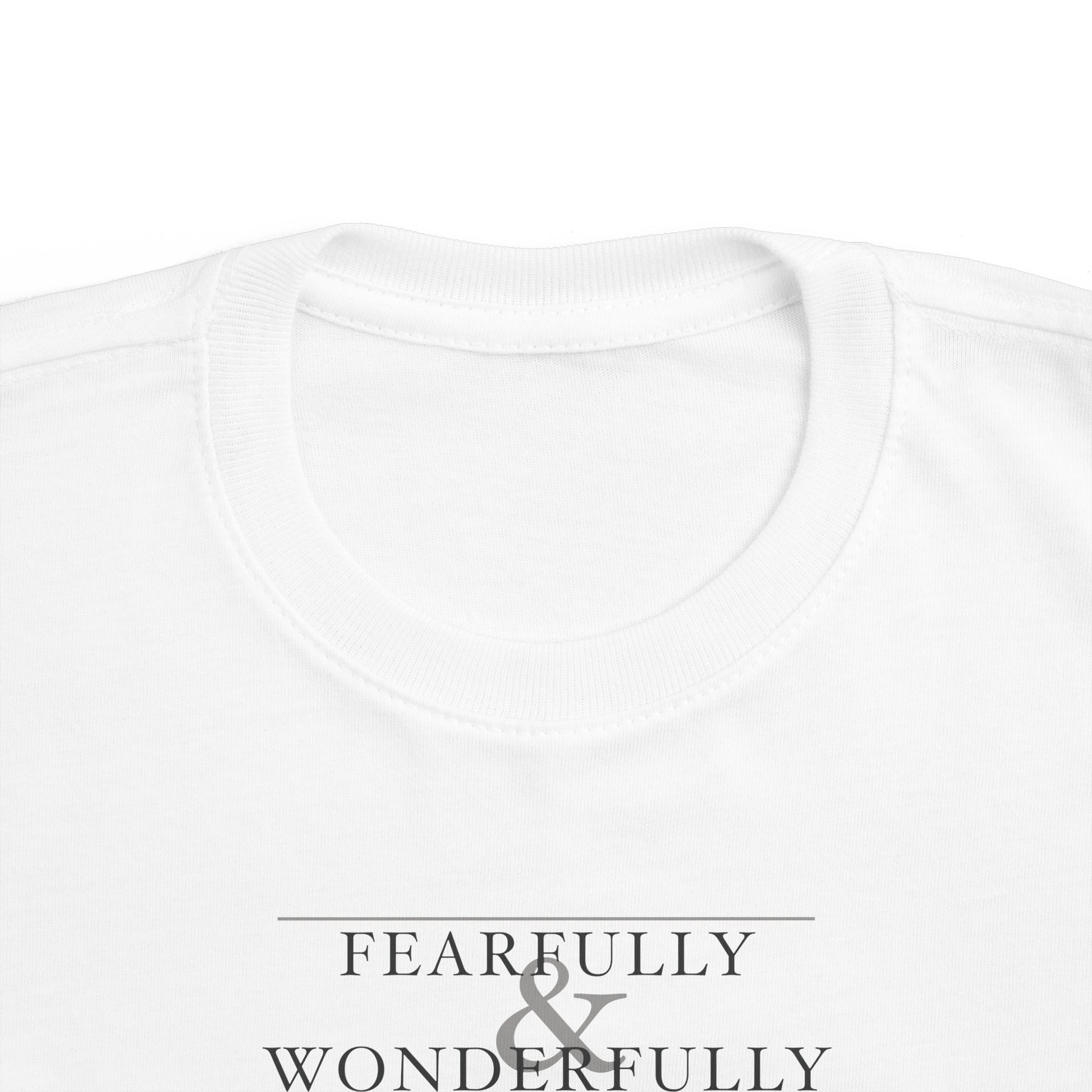 A simplistic, yet stunning design based on Psalm 139:14! This shirt is both durable and soft. The fabric is 100% cotton for solid colors, but fiber content may vary for different colors. A tee with softness that is perfect for a toddler's sensitive skin. With a durable, high-quality print, the design is a great addition to any child's wardrobe. This classic-fitting t-shirt runs true to size.