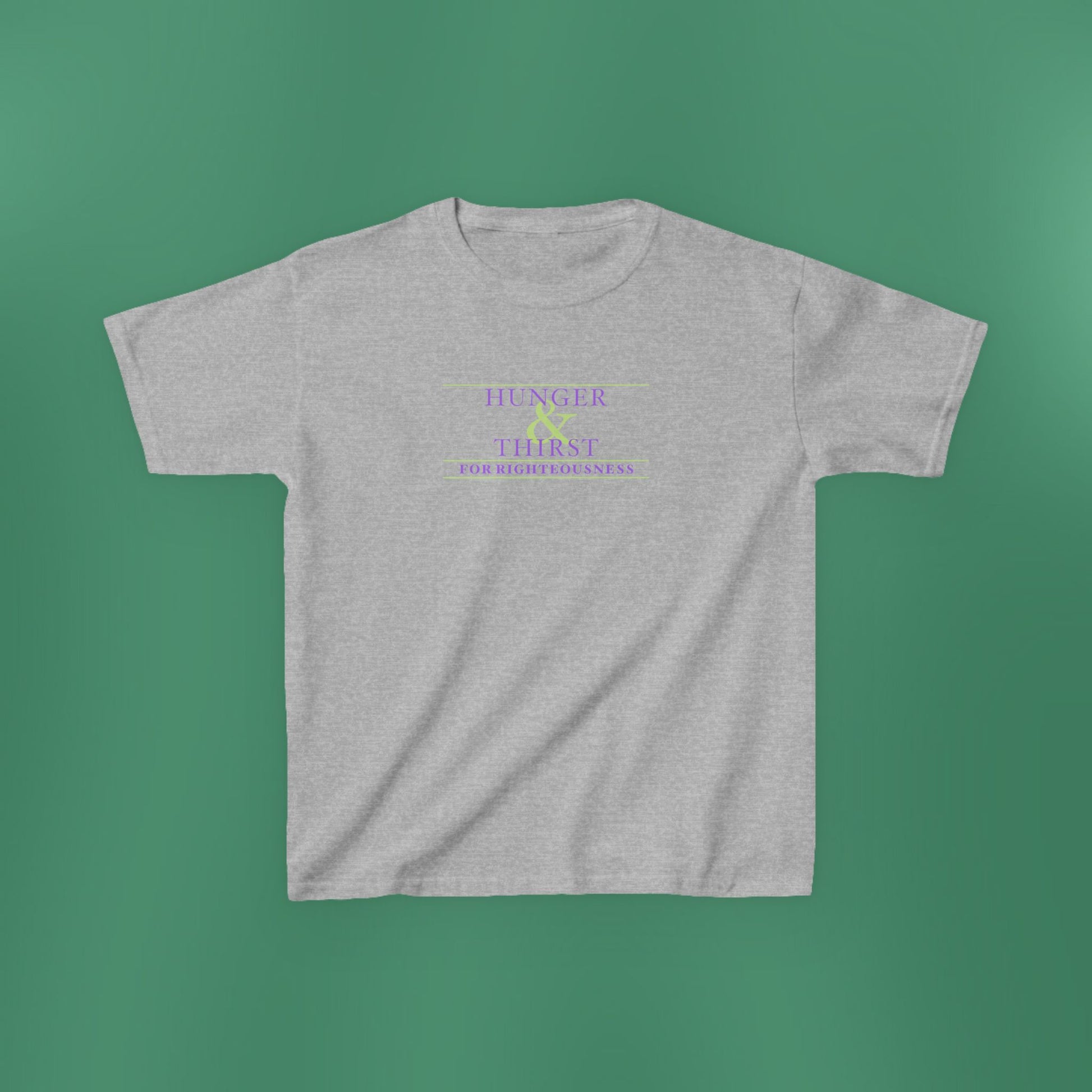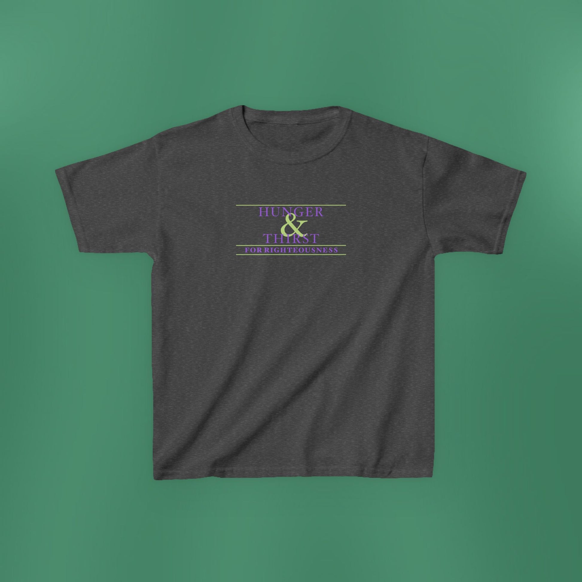 A simplistic, yet stunning design based on Matthew 5:6! The shirt has a classic, comfy fit with medium fabric. The fabric is 100% cotton for solid colors. Polyester is included for heather-color variants. The collar is curl-resistant due to ribbed knitting. There are no seams along the sides.