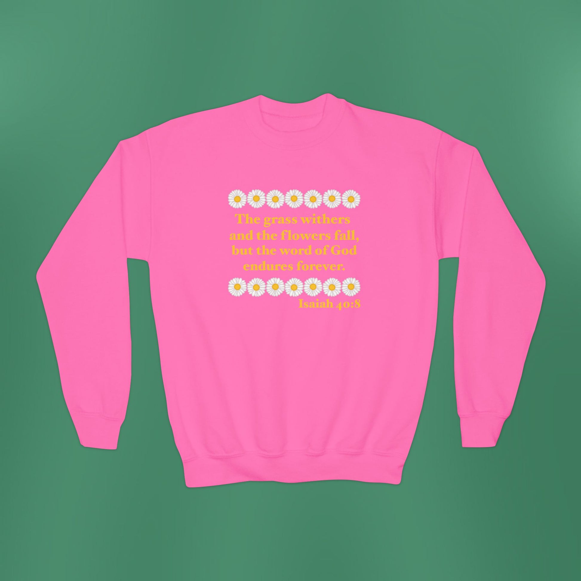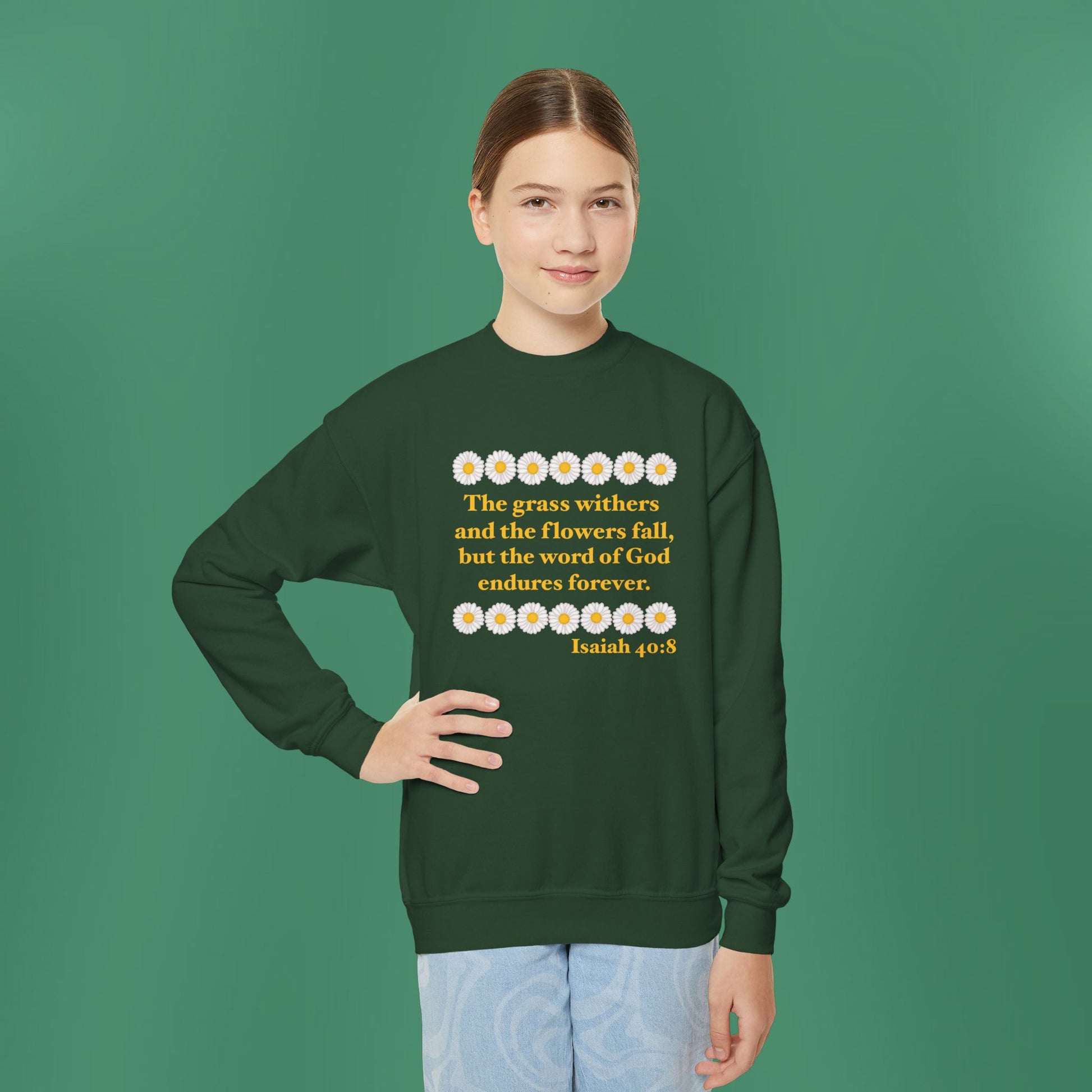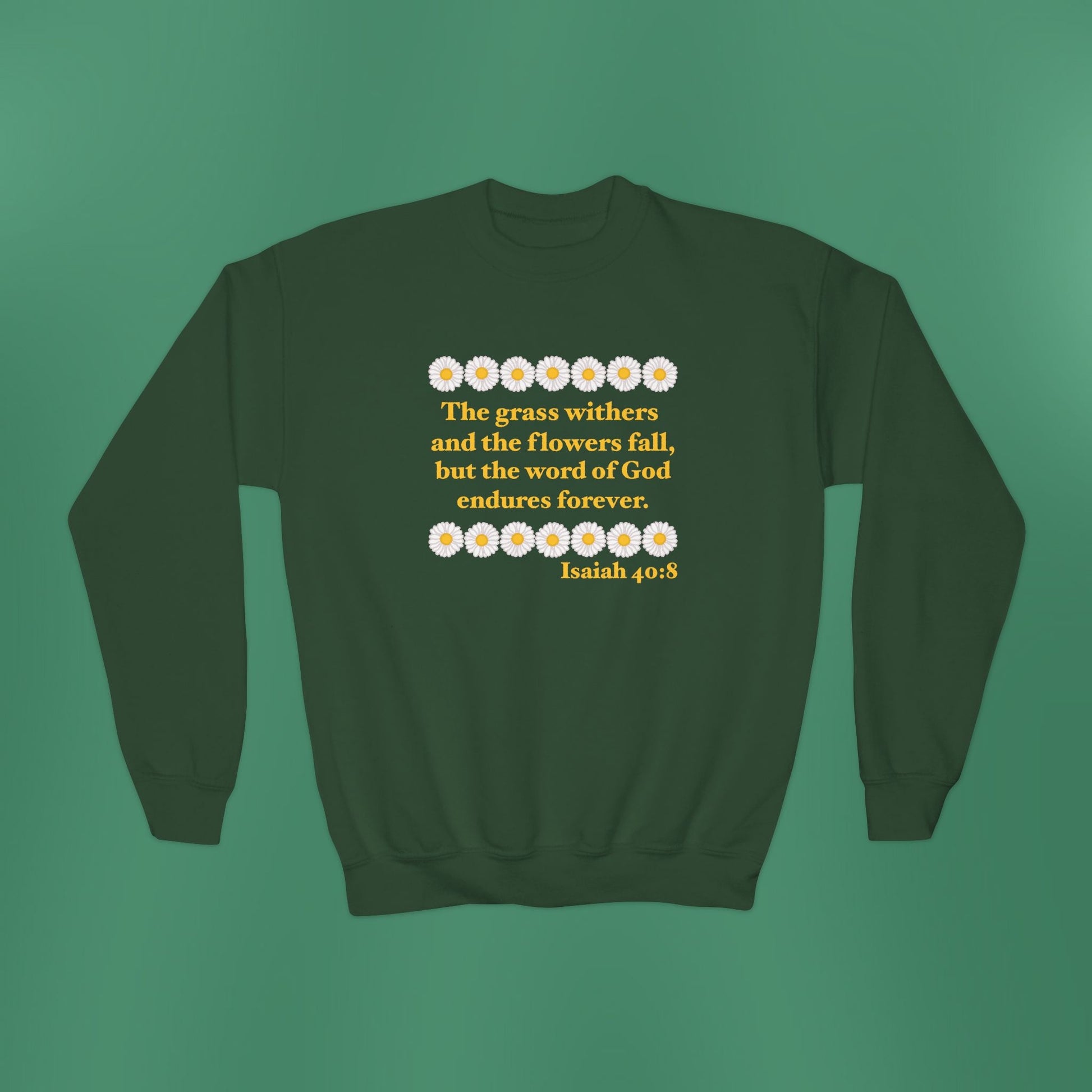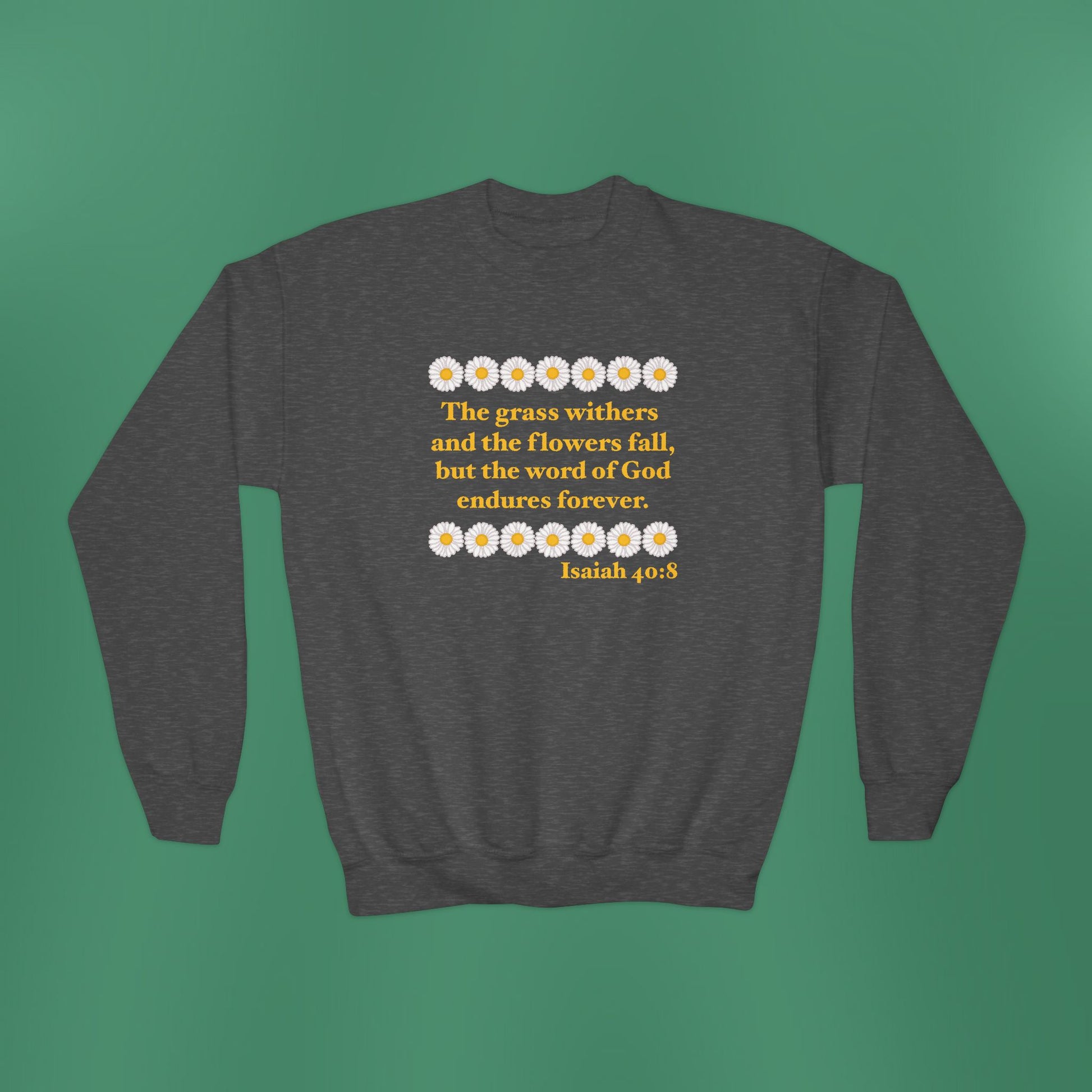 A simplistic, yet stunning design based on Isaiah 40:8! Made with a comfortably balanced blend of 50% cotton and 50% polyester, the sweatshirt is the perfect choice. Its medium-heavy fabric delivers a cozy, warm feeling while each sweatshirt runs true-to-size for a great fit.