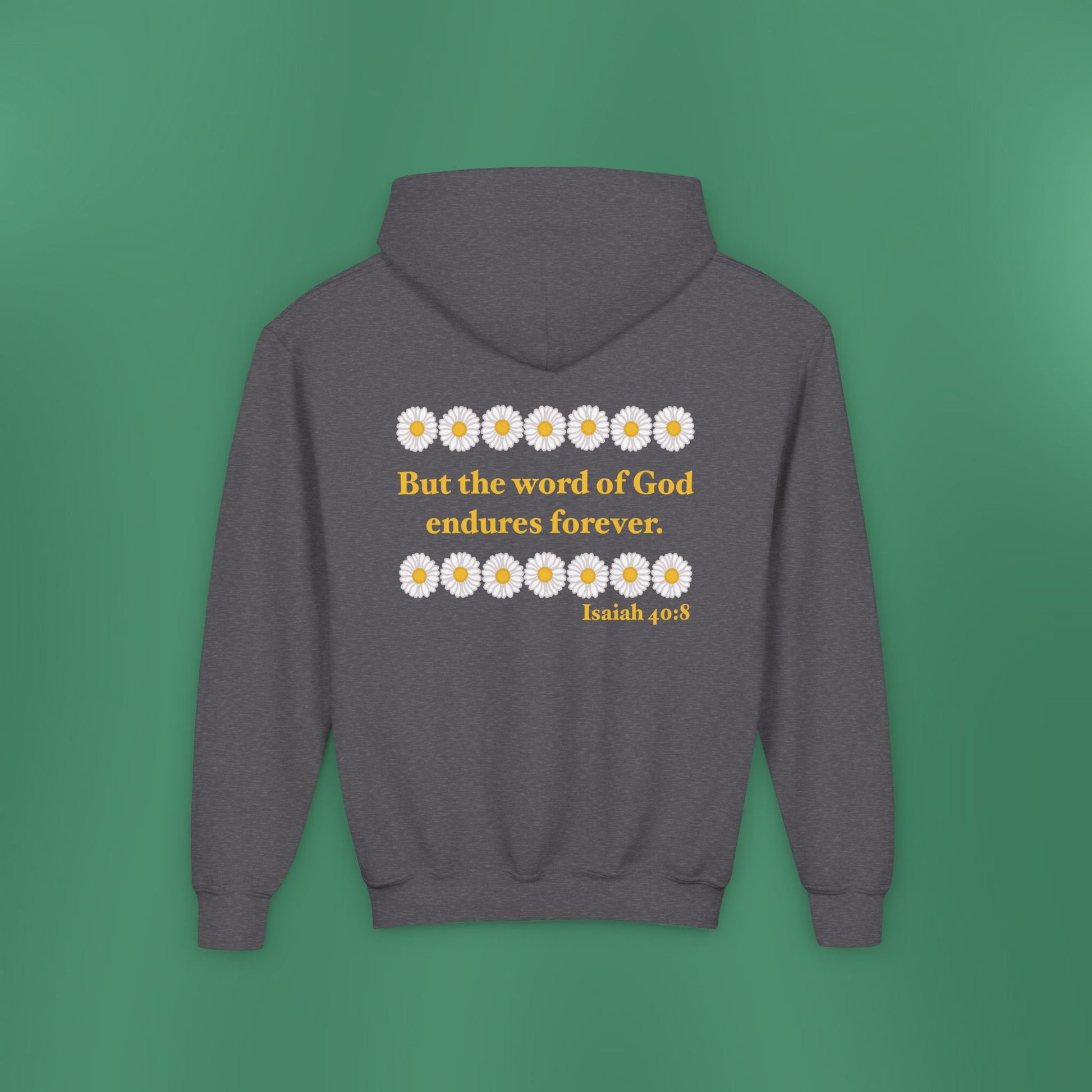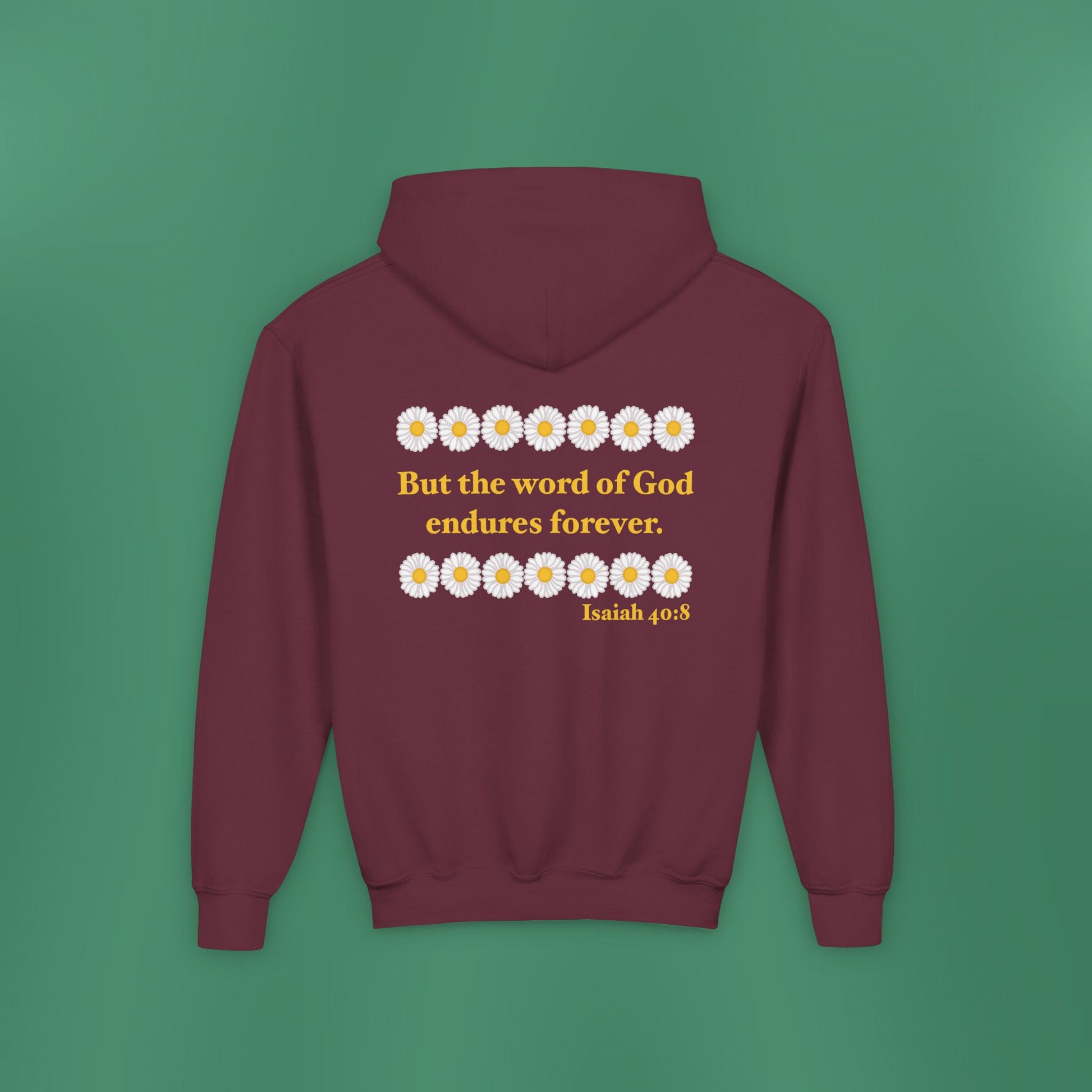 A simplistic, yet stunning design based on Isaiah 40:8! Made with a comfortably balanced blend of 50% cotton and 50% polyester, the sweatshirt is the perfect choice. Its medium fabric delivers a cozy, warm feeling while each sweatshirt runs true-to-size for a great fit.