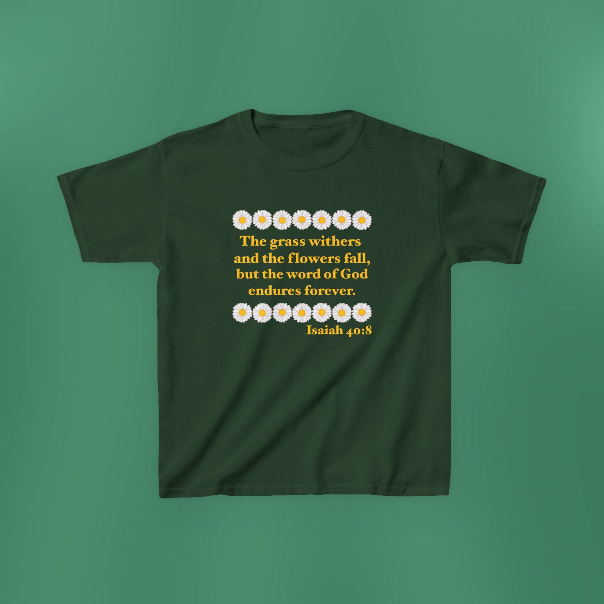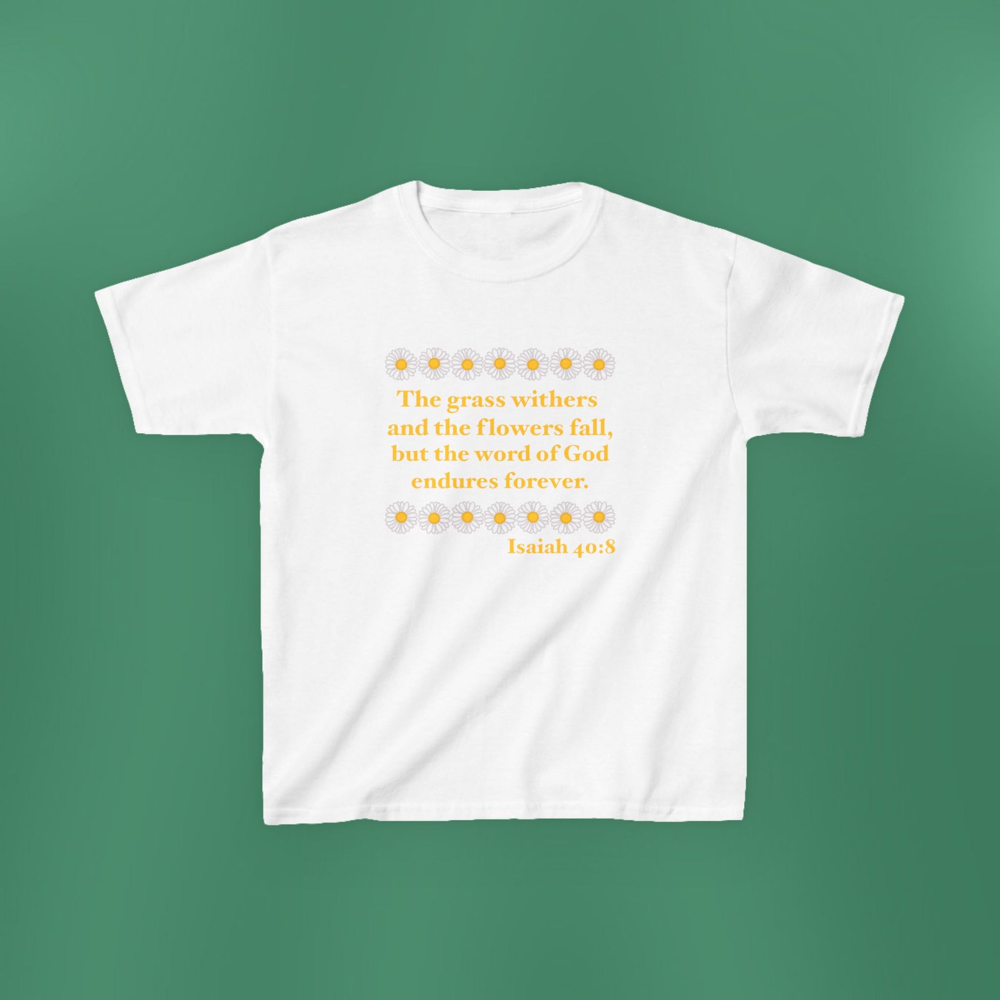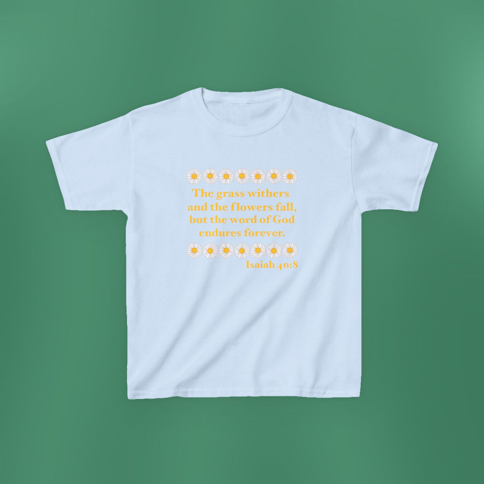 This classic fitting t-shirt displays Isaiah 40:8! The apparel is made of midweight fabric and runs true to size.