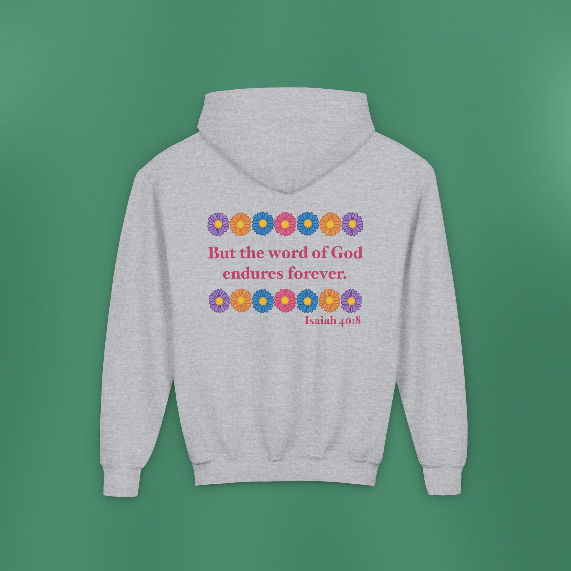 A simplistic, yet stunning design based on Isaiah 40:8! Made with a comfortably balanced blend of 50% cotton and 50% polyester, the sweatshirt is the perfect choice. Its medium fabric delivers a cozy, warm feeling while each sweatshirt runs true-to-size for a great fit.