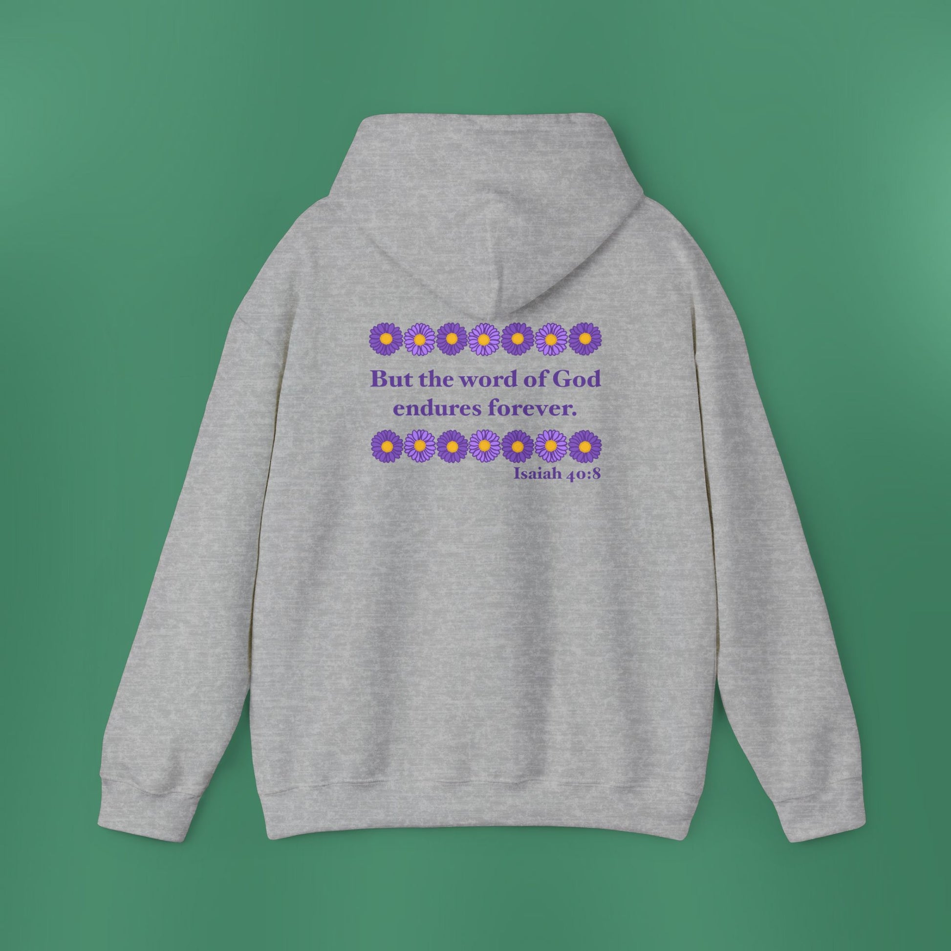A simplistic, yet stunning design based on Isaiah 40:8! This heavy blend crewneck sweatshirt is pure comfort. The collar is ribbed knit, so it retains its shape even after washing. There are no itchy side seams on these sweaters. The sweatshirt has a loose fit with medium-heavy fabric.
