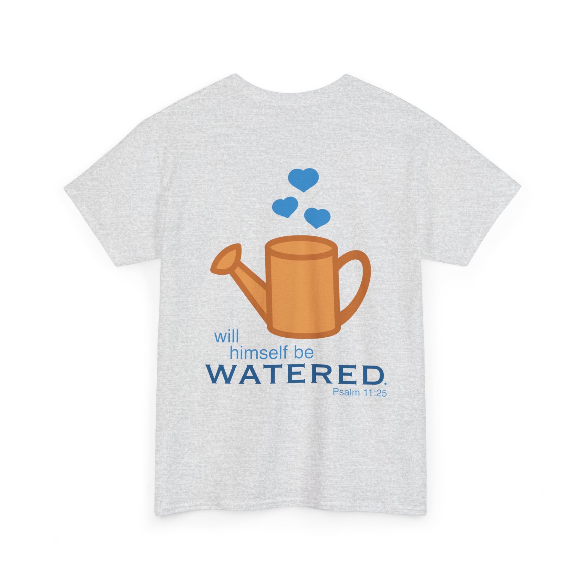 A simplistic, yet stunning design based on Psalm 11:25! The heavy cotton tee is the basic staple of any wardrobe. The shirt has a classic, comfy fit with medium fabric.