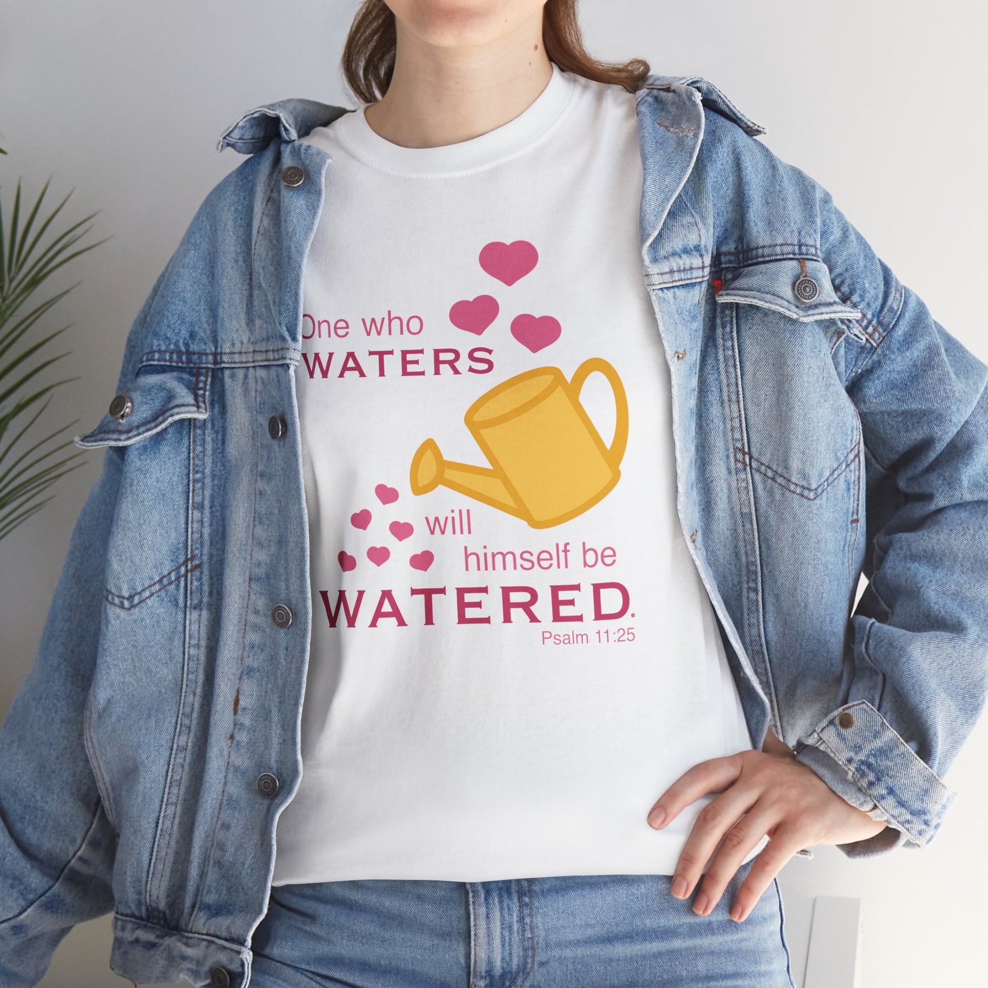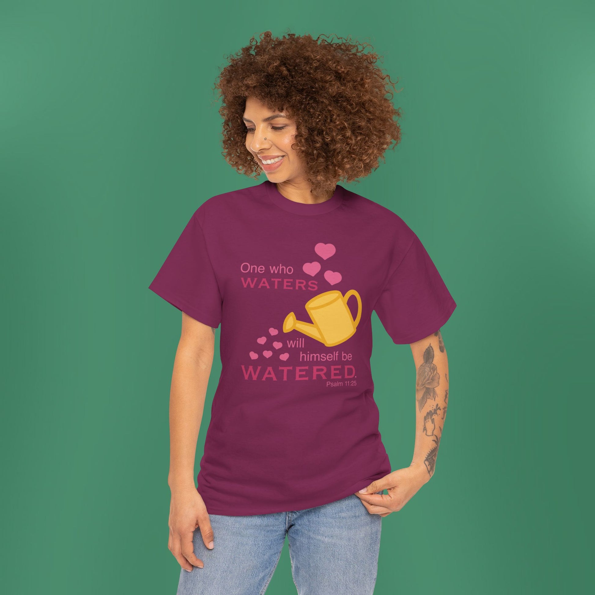 A simplistic, yet stunning design based on Psalm 11:25! The heavy cotton tee is the basic staple of any wardrobe. The shirt has a classic, comfy fit with medium fabric.