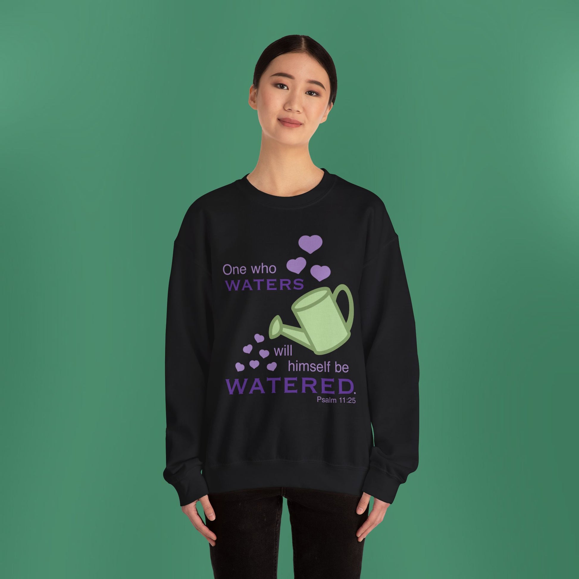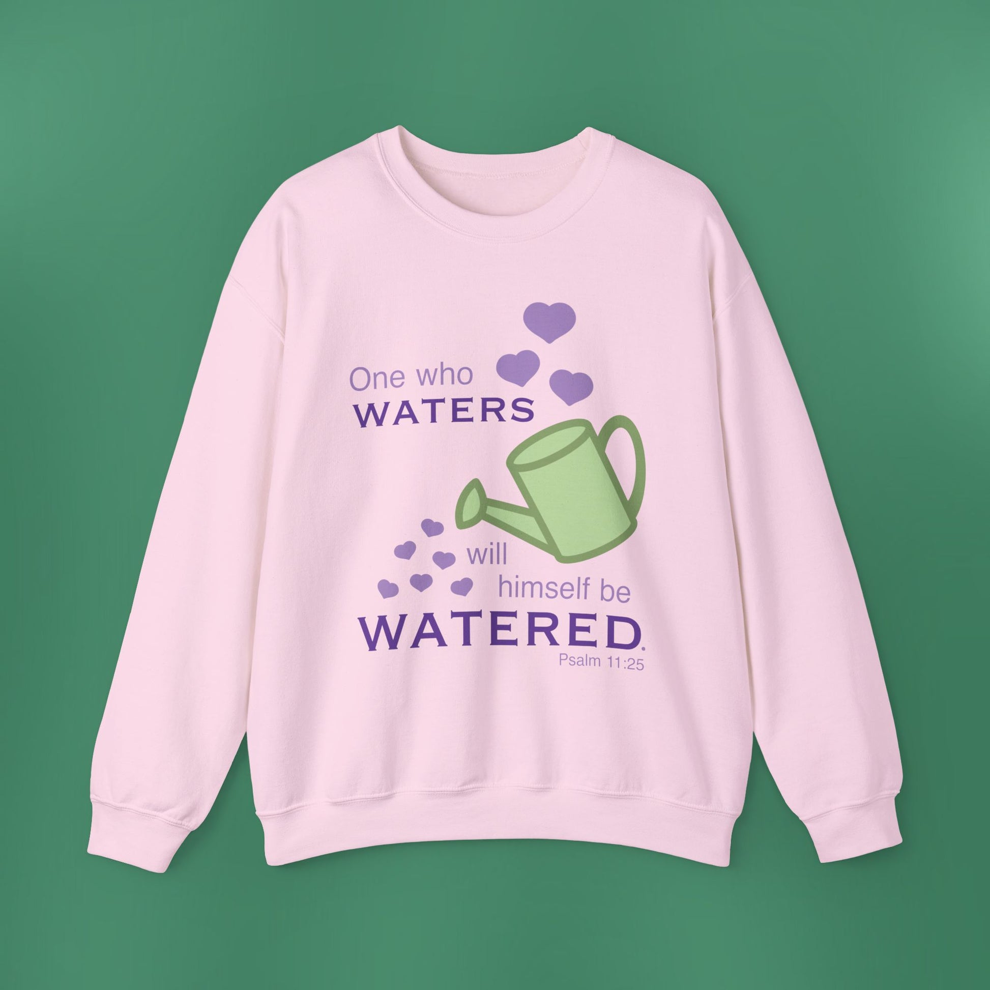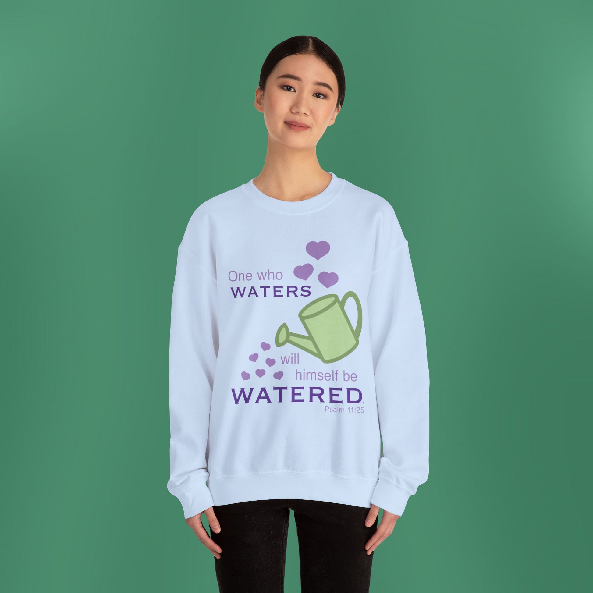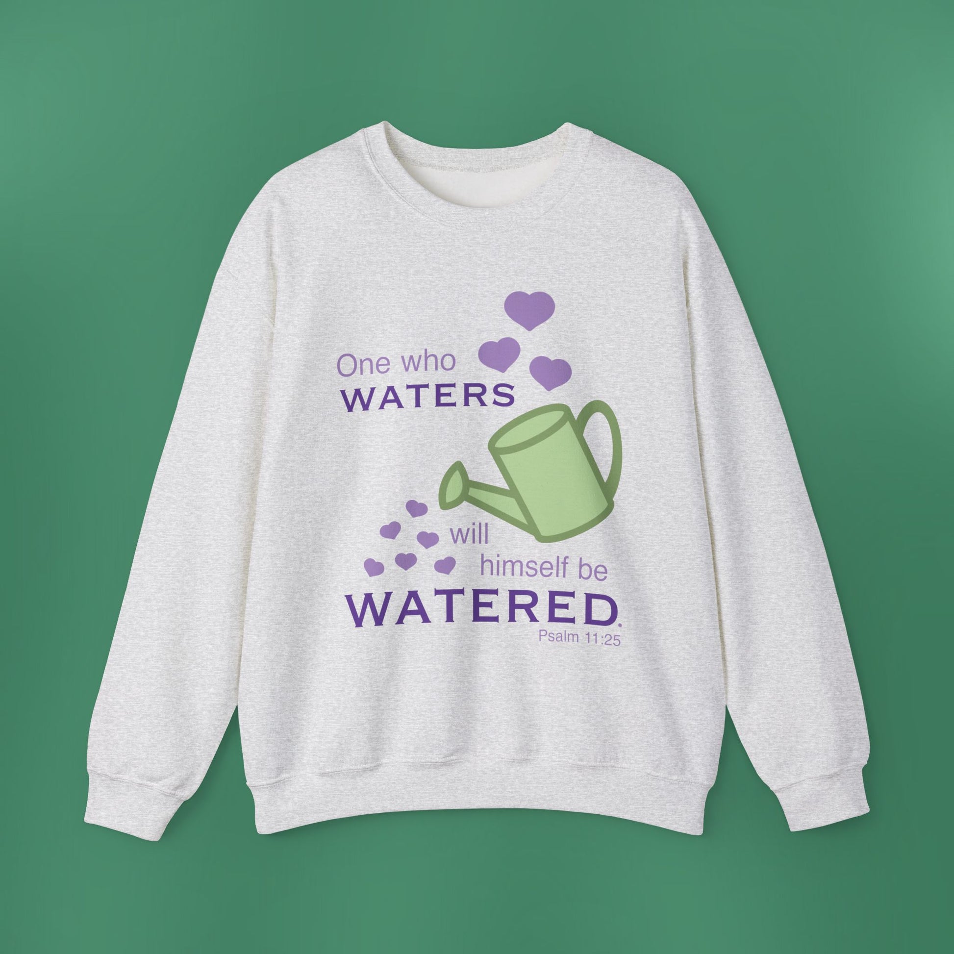 A simplistic, yet stunning design based on Psalm 11:25! This heavy blend crewneck sweatshirt is pure comfort. The collar is ribbed knit, so it retains its shape even after washing. There are no itchy side seams on these sweaters. The sweatshirt has a loose fit with medium-heavy fabric.